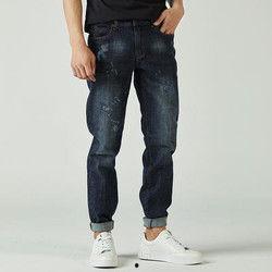 接下来,我们来看看这条牛仔裤的颜色和材质。从图片中可以看出,这条牛仔裤采用了深蓝色调,这种颜色既低调又百搭,非常适合日常穿着。至于材质,这条牛仔裤采用了高品质的牛仔布,手感柔软,透气性佳,即使在炎炎夏日也能让你感到舒适。